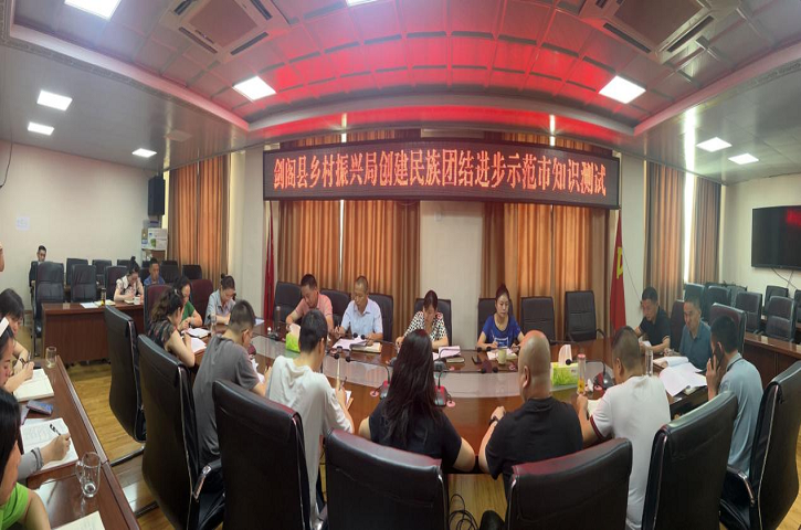 7月26日,县乡村振兴局组织召开民族团结示范市创建工作推进会,全体干部职工参加会议。会议学习传达7月18日广元市创建全国民族团结进步示范市督导检查反馈意见整改暨剑阁创建工作推进会精神,并对我局全体干部职工进行了创建全国民族团结进步示范市知识进行测试,安排我局下一步创建工作。