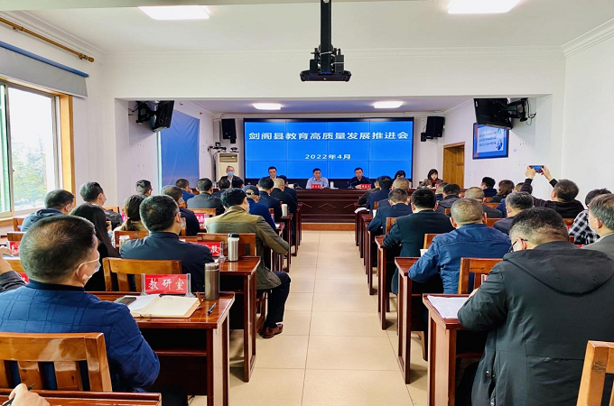 4月24日下午,剑阁县教育高质量发展推进会在局二楼会议室召开。会议深入贯彻落实全国、全省和全市教育工作会议精神,全面总结2021年全县教育工作,安排部署2022年教育改革发展任务。县委常委、宣传部部长、县总工会主席廖兴泉出席会议并讲话。会议由副县长谢家远主持。