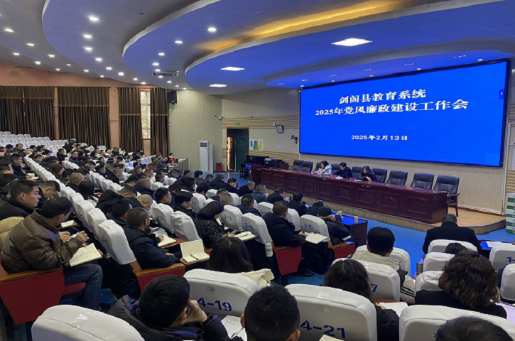2月13日,剑阁县教育系统2025年党风廉政建设工作会召开。县教育局党组书记张智勇出席会议,县纪委监委驻县教育局纪检监察组组长白胜利出席会议并讲话,县教育局局长杜小琼主持会议。局领导班子成员,机关股室及直属事业单位全体干部职工,成教中心主要负责人,教育督导责任区主任,各中小学、幼儿园党组织书记、校(园)长共计200余人参加会议。