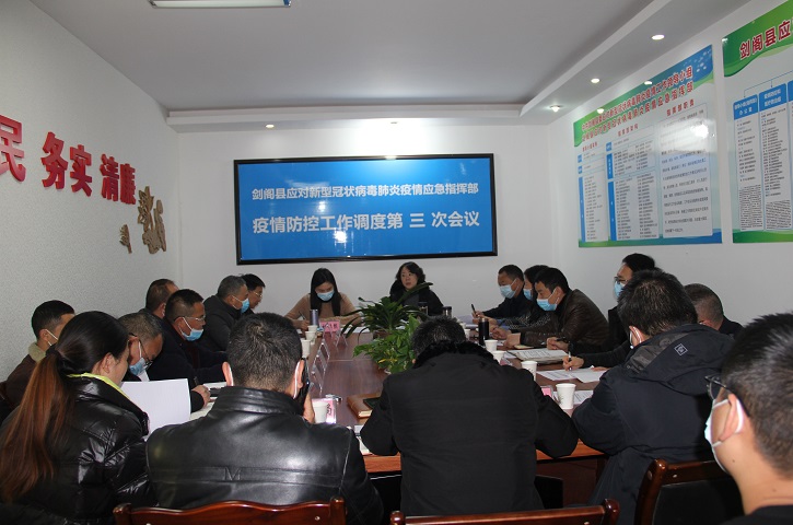 为进一步做好冬春季新冠肺炎疫情防控工作,1月25日,剑阁县应对新冠肺炎疫情应急指挥部召开疫情防控工作调度第三次会议。县委常委、宣传部长、县疫情防控指挥部副指挥长杜嫣然出席会议并讲话,副县长、县疫情防控指挥部副指挥长钟瑞主持会议,县疫情防控工作领导小组成员单位相关人员参加会议。