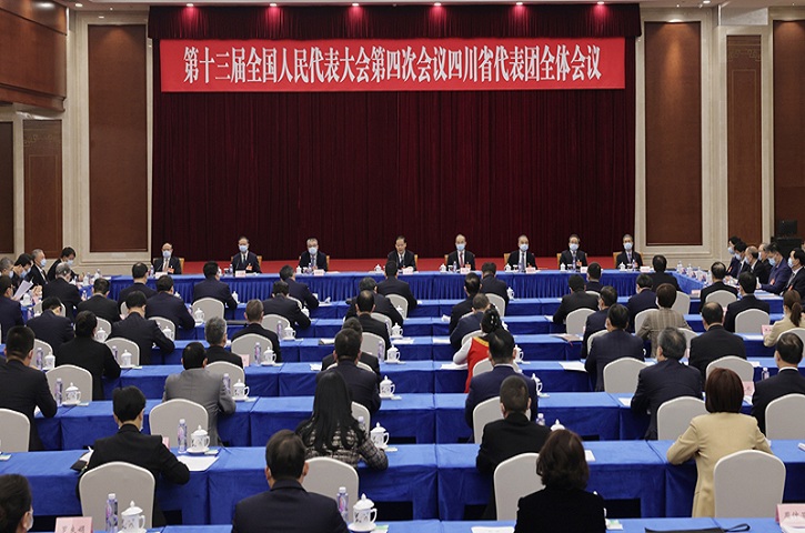 3月11日上午,十三届全国人大四次会议四川代表团在驻地举行全体会议,审议即将提交大会表决的各项决议草案。省委书记、省人大常委会主任、代表团团长彭清华主持会议并讲话,省委副书记、省长、代表团副团长黄强参加。