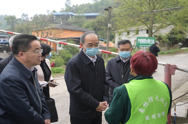 3月23日,黄强随机抽查了华蓥市双河街道招勋村防火检查站防火措施落实情况。