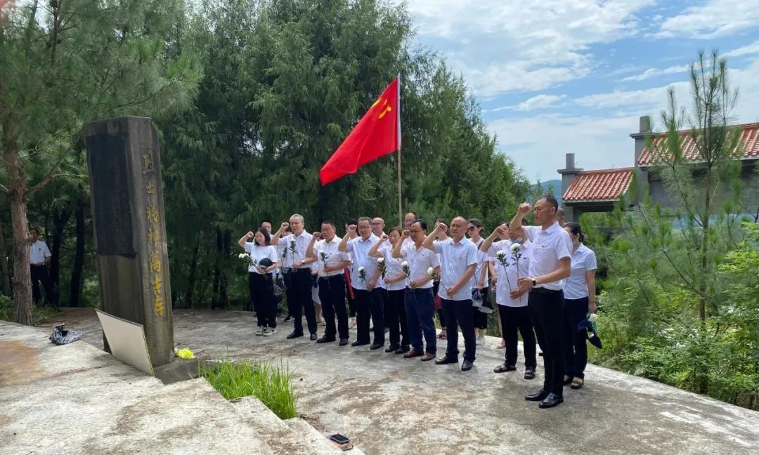 县行政审批局开展学党史、强信念、重传承、庆“七一”活动,在金仙镇双桥村庄严肃穆的革命烈士陵园前,向烈士纪念碑敬献鲜花,静默聆听老村书记讲述红色革命故事,大家实地参观,在感受历史遗物回顾党的奋斗历程同时,现场汲取革命先烈于苦难岁月中磨砺升华的奋斗精神,全体党员还重温入党誓词,深情感怀了红军战士肩负人民夙愿浴血挥洒的壮志豪情。