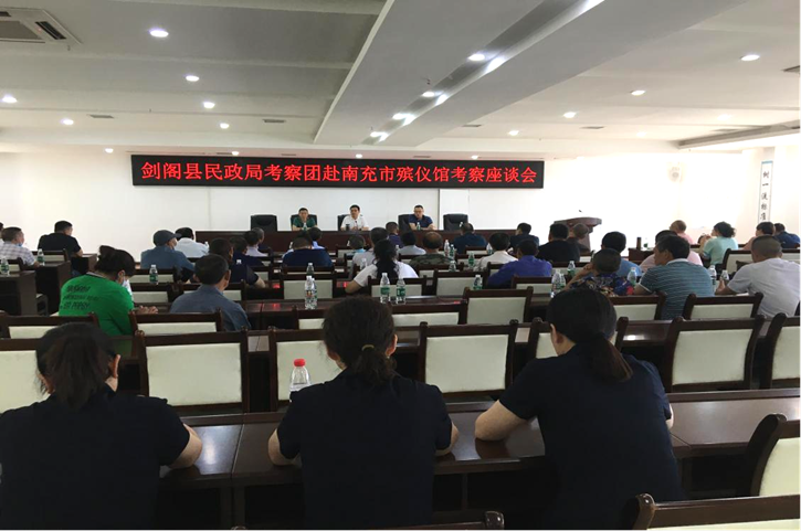 剑阁县民政局局长程元军对市殡管处的热情接待表示感谢。他表示,来南充市殡仪馆考察学习收获颇丰、获益匪浅,南充市殡仪馆独特的建筑设计、先进的服务理念、完善的硬件设施、浓厚的文化氛围令人印象深刻,剑阁县民政局考察团将以此次考察为契机,把学到的好理念、好做法融入到剑阁县殡葬事业改革中去,保障基本民生福祉,满足群众最基本的丧葬需求。参加座谈会的部门就殡仪服务项目建设相关问题现场提问交流。二龙村干部表态发言,回去后一定将新型的殡葬理念传达给更多的群众,统一干部群众思想,争取群众最大的支持和理解,积极推动剑阁县殡葬事业的发展。