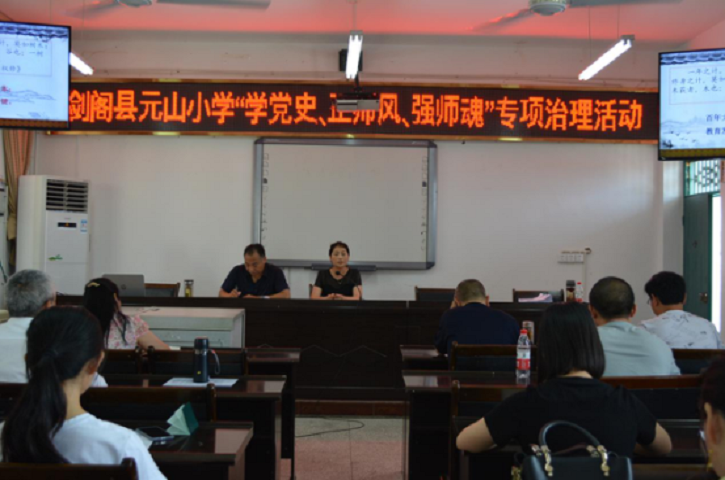 为提升教师个人素养,树立教师队伍良好形象,7月15日上午,在元山小学会议室开展了“剑阁县元山小学‘学党史、正党风、强师魂’专项治理活动”。元山镇宣传委员徐丽红给元山小学全体教职工讲解了相关的政策法规,其次明确讲解了教师工作生活纪律、假期疫情防控注意事项,最后对防诈反诈、禁毒等微信公众号进行了宣传推广。