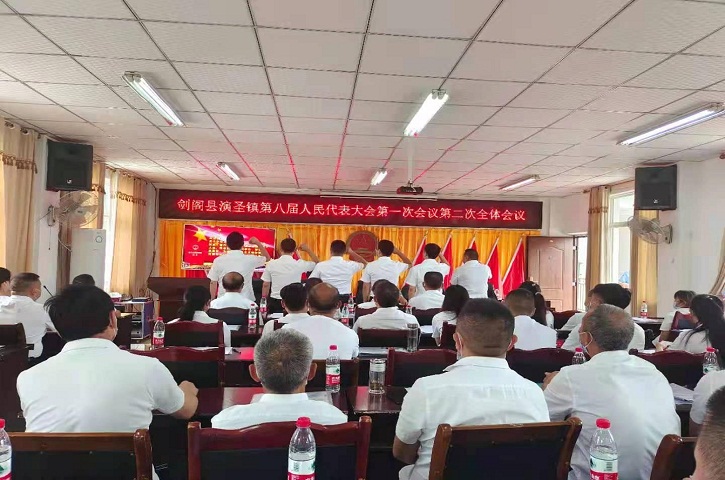 会议严格按照法定程序,充分酝酿,依法选举产生演圣镇新一届人大、政府领导,何畏全票当选镇人大主席,徐永茂全票当选镇长,何济川、左明福、李浩、吴鲜坤均全票当选副镇长。新当选镇长徐永茂作讲话发言,并举行宪法宣誓仪式。