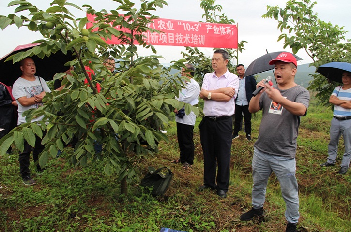 在下午室内教学会上,省市专家就核桃、中药材产业发展市场行情、政策趋势、栽培技术和林下套种等内容进行分析、讲解和培训。结合剑阁县实际,在个性化品种选育、地理标志品牌创建、市场竞争力提升和新型经营主体培育等方面提出新的发展思路、方向和建议。