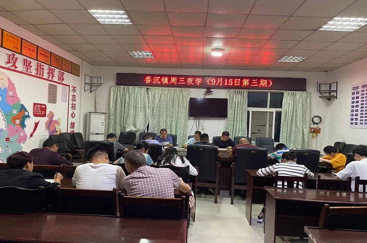 9月15日19:00,香沉镇周三夜学准时开课。活动由镇党委书记程远主持并领学。