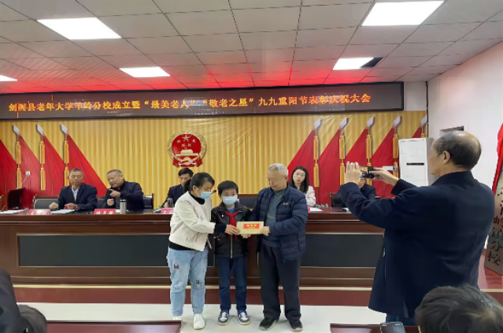 关爱老人既是中华民族的传统美德,也是人类进步科学发展的前提,只有人类的思想纯正了社会才能健康的发展,关爱老人并不单单是一个家庭、一个孩子的事,而是需要一个社会、一个国家共同努力。10月13日,重阳佳节来临之际,羊岭镇党委政府召开会议,庆祝剑阁县老年大学羊岭分校成立,同时对“最美老人”和“敬老之星”进行表彰。