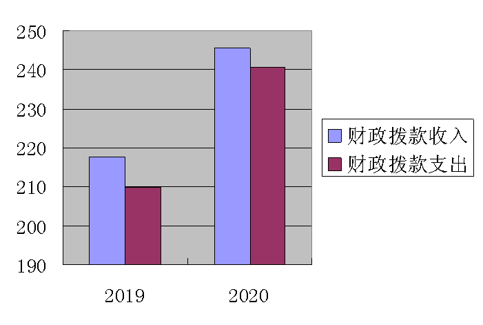 2020年财政拨款收入总计245.62万元、支出总计240.61万元。与2019年相比,财政拨款收入总计增加27.88万元、增长12.8%,支出总计增加35.37万元,增长16.86%。主要变动原因人数增加及标准提高,对应的生均公用经费及人员经费收入、支出增加。