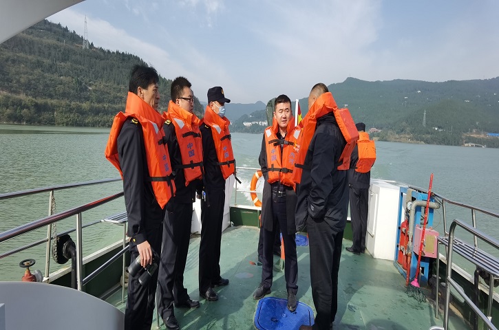11月9日至10日,剑阁县交通运输局组织县交通运输综合行政执法大队及机关相关股室人员,乘川海巡561巡逻艇深入亭子口剑阁库区通航水域开展2021年度冬季水上交通安全巡航工作。重点督导检查了库区通航水域航道,采砂船、运砂船和客渡船舶证书证照、人员配备及安全措施、环保政策规定落实,砂石开采点规范运营等情况。