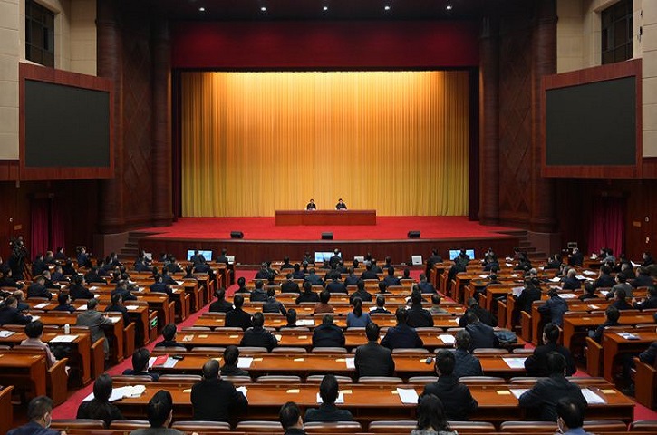 报告会以电视电话会议形式召开,各市(州)、县(市、区)设分会场。省委、省人大常委会、省政府、省政协、省军区领导,省法院院长、省检察院检察长,正省级离退休老同志,省直各部门(单位)、中央在川单位负责同志,各民主党派省委负责同志和无党派人士代表,以及各有关方面代表等在主会场参加报告会。(记者 张守帅 摄影 欧阳杰)