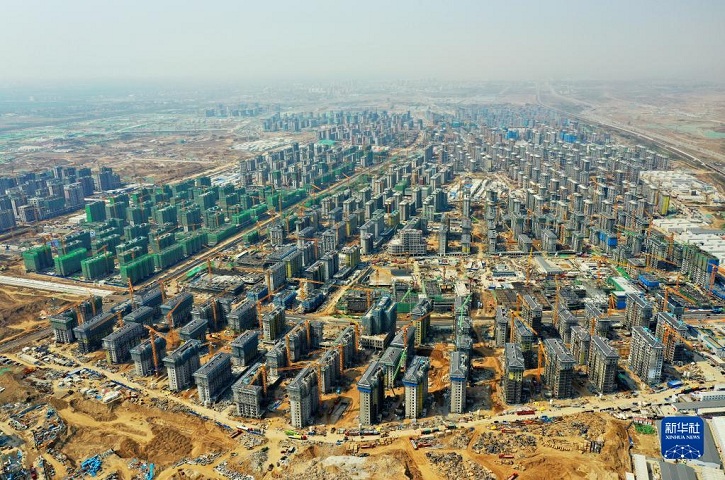 河北雄安新区容东片区安置房项目建设现场(4月8日摄,无人机照片)。新华社记者 牟宇 摄