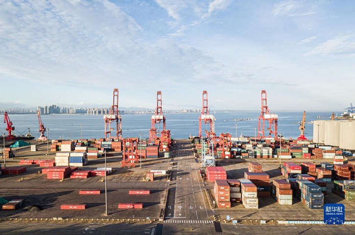 这是在海南洋浦经济开发区拍摄的国投洋浦港码头(5月26日摄,无人机照片)。新华社记者 蒲晓旭 摄