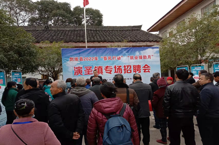 3月1日上午,剑阁县2022年“春风行动”“就业援助月”专场招聘会在演圣镇举行,此次招聘会由剑阁县人力资源和社会保障局、剑阁县退役军人事务局 、剑阁县总工会、剑阁县就业服务中心、演圣镇人民政府联合主办,剑阁县众诚人力资源开发有限公司、四川兆展人力资源有限公司承办。