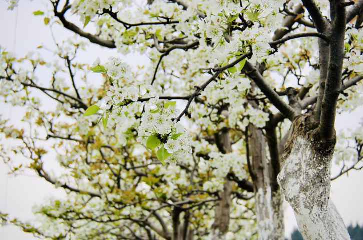 走在梨园种植区,眺望远方,只见一树树梨花已经开放,成林成片,如玉似雪,争相传递着春的讯息。沿着村道一路前行,道路两旁的梨花有的含苞待放,有的已经盛开,洁白的梨花在高大的梨树上随风摇曳,一簇簇、一团团压满枝头,一幅春意满满的画卷,风从花海深处出来,从半山腰吹来,带来阵阵花香。梨花树下,有些游客拍花,有些游客摆造型拍照,享受着春天的馈赠和花的盛宴。