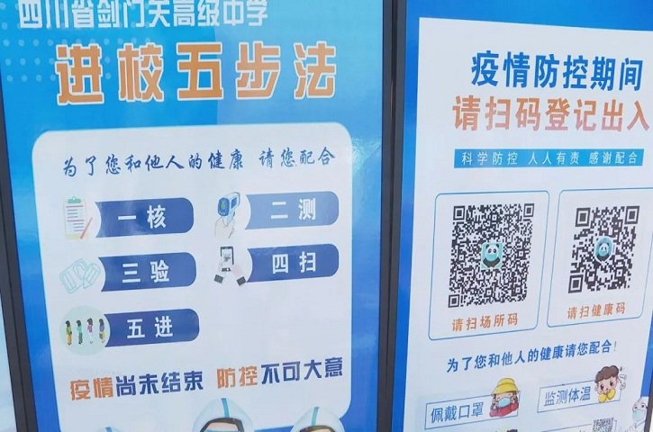 剑门关高级中学安保疫情防控负责人李映伦:“为了实现平安健康高考,我们对领队、考务人员、后勤保障等相关人员进行健康监测14天,所有人员进入考点都必须查验健康码、行程码,扫场所码。同时,对每天校园环境、食堂、宿舍以及考场进行了消、杀、灭,对所有的人员进行核酸检测。”