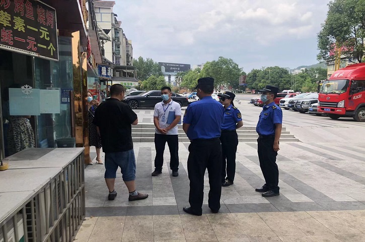 执法中队对网吧、烧烤店、KTV、夜间摊贩进行禁噪提醒。