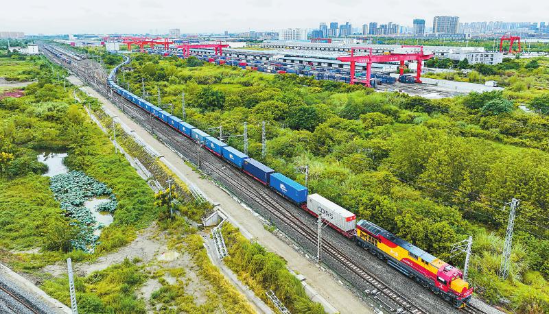 8月29日上午,四川自主知识产权产品集中出海首列列车从成都国际铁路港发车。