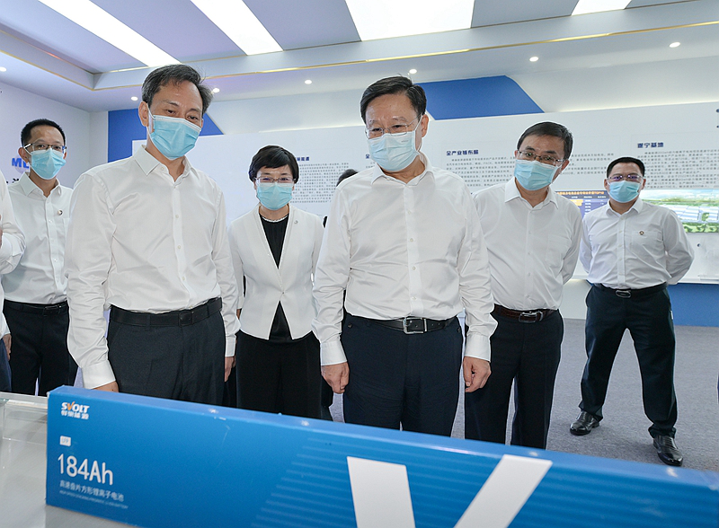 9月19日,省委书记王晓晖到遂宁经开区蜂巢能源动力锂离子电池项目现场调研,听取企业推进能源互联建设及遂宁市推动锂电产业建圈强链、集群发展情况汇报。