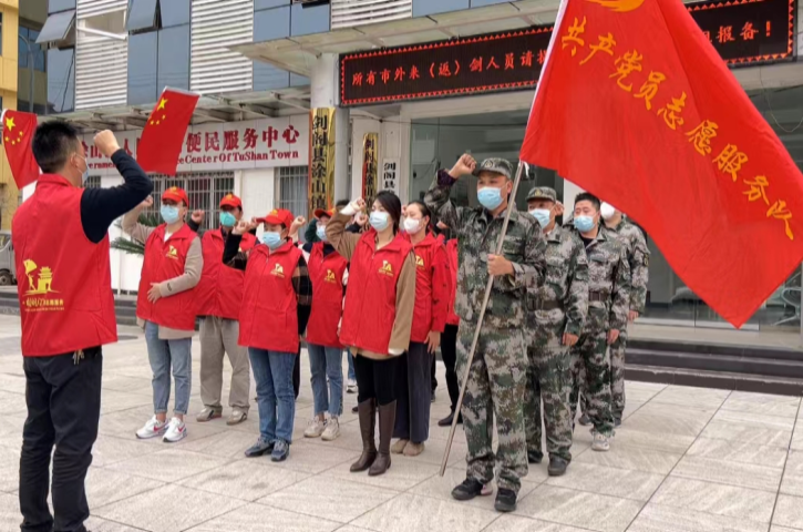 涂山镇党员志愿服务队宣誓,疫情不灭责任不懈