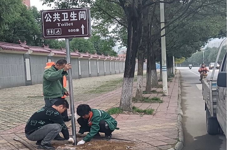 公厕“大整治”。一是保证公厕日常整洁卫生,做好每日消杀、加大日常保洁力度,做到随脏随保洁、干净无异味。二是及时做好设施维修工作,对城区内公厕进行全面排查摸底,对有破损的水龙头、隔挡板、门把手等设施及时维修更换,保证设施完好无损。三是根据“公厕指示牌每隔500米至少能看到1处”的工作要求,对辖区范围内公厕周边指示牌设置情况进行实地勘察,对有破损的指示牌进行维修,对缺少指示牌的路段科学规划,在公厕附近合理范围内增设指示牌,让市民更“方便”。