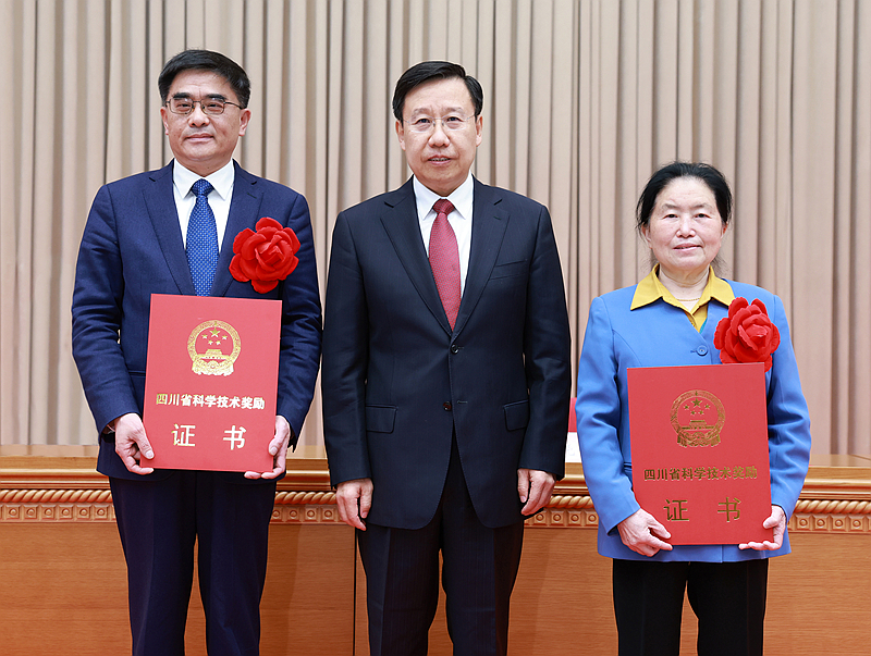 会上,宣读了省政府《关于2022年度四川省科学技术奖励的决定》和省委、省政府《关于授予王玉忠等14人第三届“四川杰出人才奖”的决定》。在热烈掌声中,王晓晖为省科学技术杰出贡献奖获得者王琪、赵金洲颁奖。随后,王晓晖、黄强等省领导为四川杰出人才奖和省科学技术奖获奖代表颁奖。获奖代表王琪、王海峰、翟婉明作交流发言。