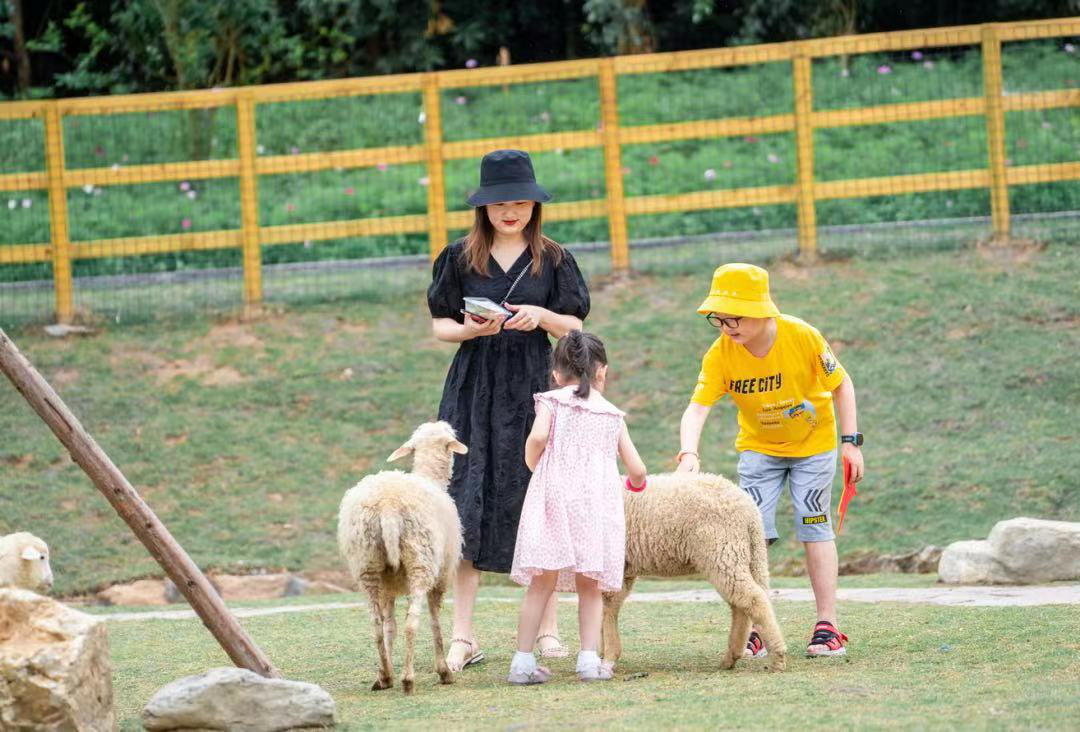 萌宠乐园的羊驼、小山羊在阳光洒落的草地上肆意奔跑撒欢,呆萌可爱的羊驼、兔子,还有骄傲的孔雀,美丽的黑黑天鹅……实现在家门口就能摸遍全球萌宠,喂食、拍照、亲密接触,伸出手去摸摸小动物的时候,一切都被眼前这幅美好的场景所治愈。