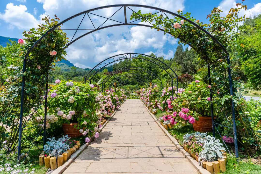 畅游玫瑰花径、剑溪花田,在天空之境观景平台饱览双旗美村全貌,与小剑山合影留念,定格最美瞬间。风车、鸡公车、簸箕、豆腐工坊……身临其境体验农耕文化,三五好友围坐在大草坪上,聊“诗和远方”,感受自然之美与文旅融合之美。