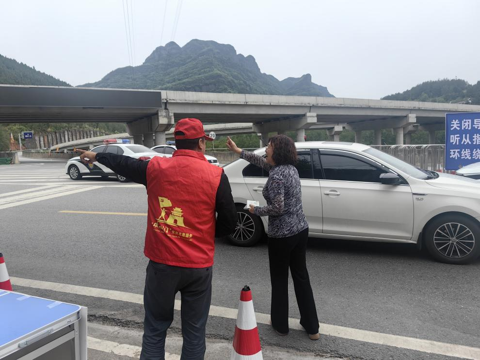 “剑门关景区怎么走?”“当地特色美食和住宿可以推荐一下吗?”一名外地游客向三江口点位志愿者询问,身穿红马掛的志愿服务者们正在热情为游客解答疑问,为他们提供道路指引及咨询服务。