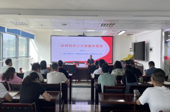 为提升统计干部职工公文写作水平,增强统计队伍综合服务能力。9月9日下午,剑阁县统计局特邀县委办副主任、县党史和地方志事务中心主任张忠仁,就“如何写好公文和宣传信息”开展专题培训。剑阁县统计局全体干部职工参加培训。