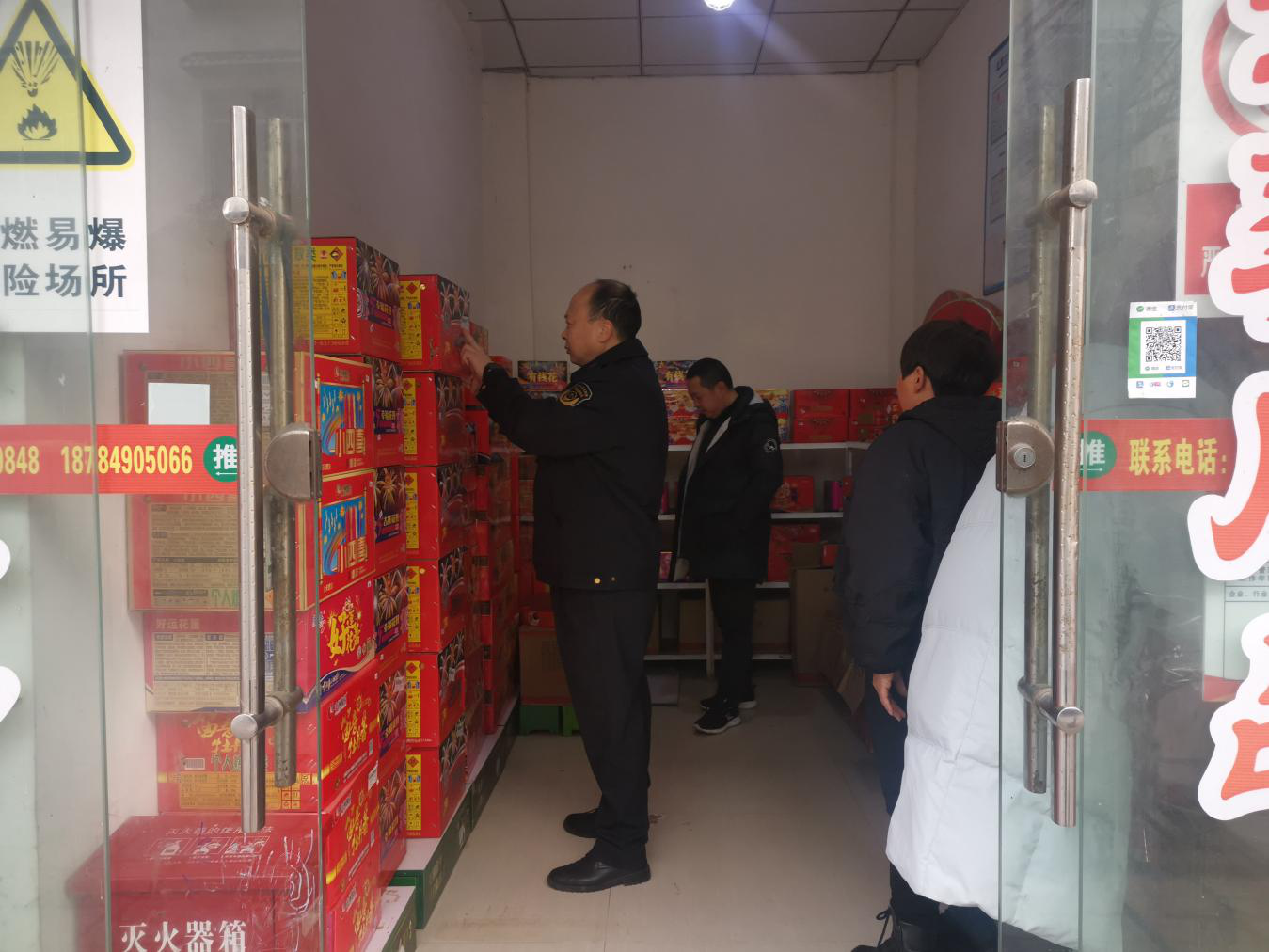 元旦春节假期临近,烟花爆竹销售进入旺季,为更好地规范烟花爆竹行业经营行为,严防各类烟花爆竹安全事故发生,确保我镇安全形势稳定,近日,江口镇镇安办联合市场监管所,在全镇范围内持续开展烟花爆竹零售店专项检查行动,排除安全隐患,查堵安全漏洞,全力保障人民群众生命财产安全。