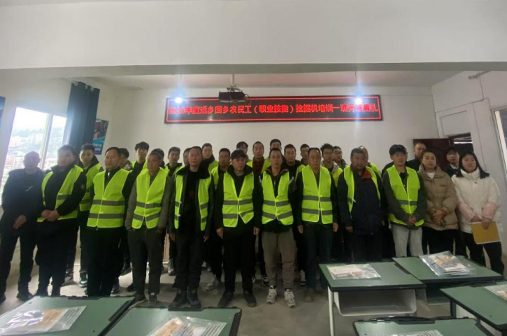 2月13日,剑阁县2025年首期返乡回乡农民工挖掘机培训班开班仪式在剑阁县普安镇源润职业培训学校举行。