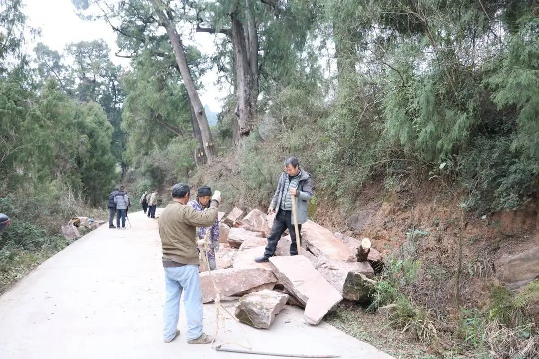 在龙源镇青杆村,又是另一番忙碌景象。工人们正忙着挖土、抬运大条石、修面,对几棵悬空古柏底部加筑3米高的堡坎。高继武向工人叮嘱,不仅要保证基础稳固,随地形加筑,还要注意行车视线,确保安全。