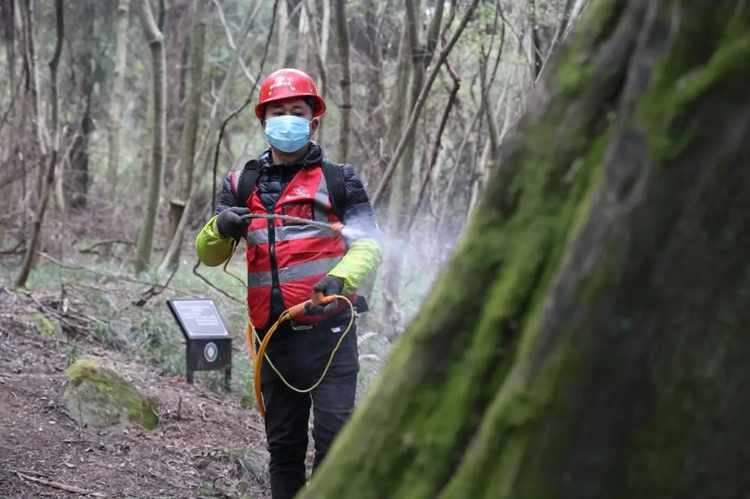 当下正值杀虫除菌的黄金时期,蜀柏毒蛾、松毛虫以及双条杉天牛、白蚁等,都是重点防治对象。除了虫害防治,工人们还要对古柏腐烂的部分进行妥善处理,再补刷桐油做好防护;对于那些长势不佳、缺乏养分的古柏,也会及时为它们补充“营养液”,助力其恢复生机。