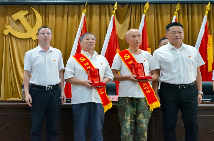 大会紧扣主题,内容丰富。组织统战委员围绕《党政机关厉行节约反对浪费条例》基层党建创新及乡村振兴战略等开展专题培训,强化党员干部理论武装与业务能力建设。“光荣在党 50 年” 纪念章颁发仪式上,镇领导为老党员代表郑重授章,致敬其数十年如一日的忠诚奉献。同时,大会对 6 个先进基层党组织、15 名优秀党务工作者和 18 名优秀共产党员进行表彰,树立先进典型,激发干事热情。新党员宣誓、全体党员重温入党誓词,以铮铮誓言彰显初心使命。纪委书记通报违反中央八项规定精神典型案例,发挥警示教育作用;党委书记讲授专题党课,要求党员深化作风建设,筑牢思想防线。
