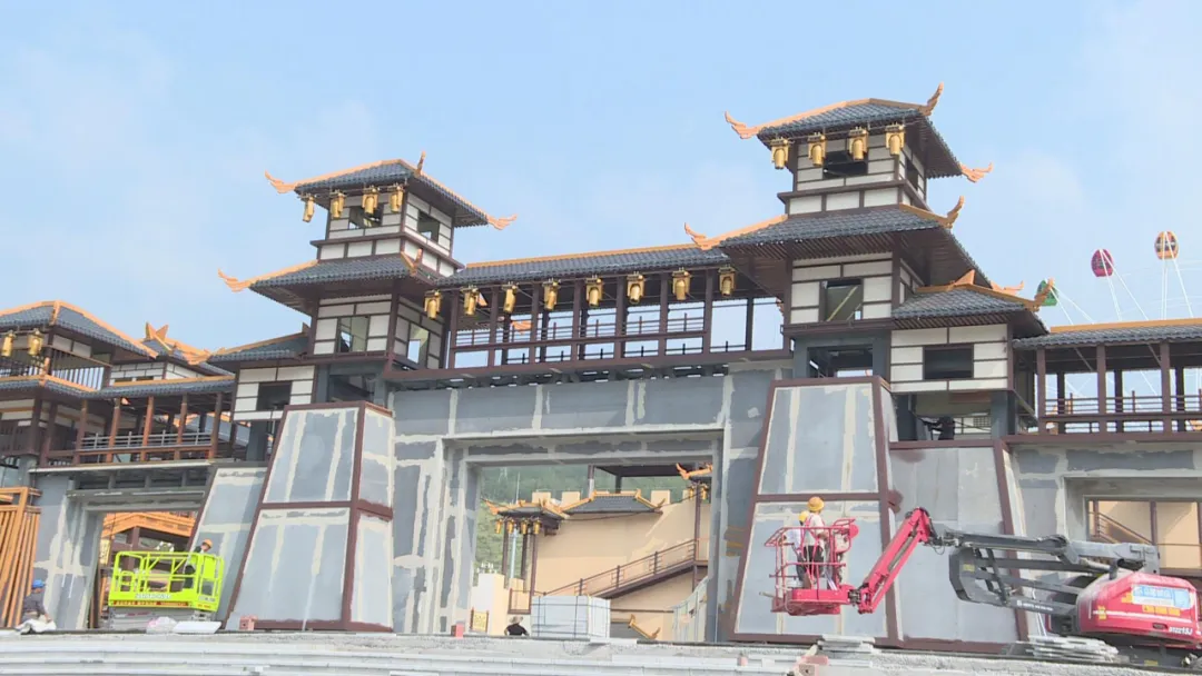 在大蜀道剑门关旅游基础设施建设项目施工现场机器轰鸣、人员忙碌,建设者们正顶着烈日有序开展钢筋绑扎、钢结构焊接等工作。