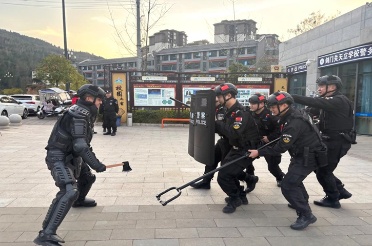 聚焦实战能力,练宣一体发力,夯实安全防范根基。紧扣反恐防范核心要求,既抓普法宣传,更抓实战演练,靶向提升民辅警应急处置能力与重点单位安防水平。一是实战演练锤炼处置硬功。在辖区反恐教育基地开展全要素反恐实战演练,民辅警分组进行队形配合、警械使用、突发事件处置等科目演练,模拟街头暴恐事件处置场景,通过实景实操提升快速反应、协同作战能力;同时组织警力对演练流程复盘总结,查漏补缺,进一步完善辖区反恐处突应急预案。二是重点目标防护抓细抓实。组织警力对全县党政机关、金融网点、商圈商超等重点目标单位开展上门宣讲与现场指导,结合《反恐怖主义法》解读安全防范主体责任,督促各单位完善反恐应急预案、补齐安防短板;针对黄金珠宝店等易受侵害的商业场所,指导商户落实安防措施、开展应急演练,全面提升重点目标自主防范能力。三是重点群体普法精准入心。针对辖区青少年、老年群体、外来务工人员等不同群体认知特点,创新采取以案释法、方言宣讲等形式,重点宣讲公民反恐法律责任、线索举报途径及奖励政策,鼓励群众主动参与群防群治,期间累计收到群众提供的各类涉恐涉稳线索5条。