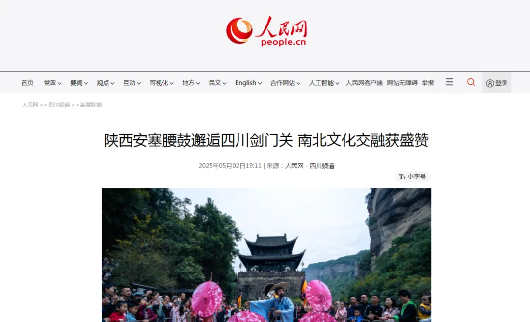剑门关丰富多彩的五一假期活动,受到了人民网四川频道、四川观察、四川新闻联播、中国网、上游新闻、四川在线等多家媒体的持续曝光。