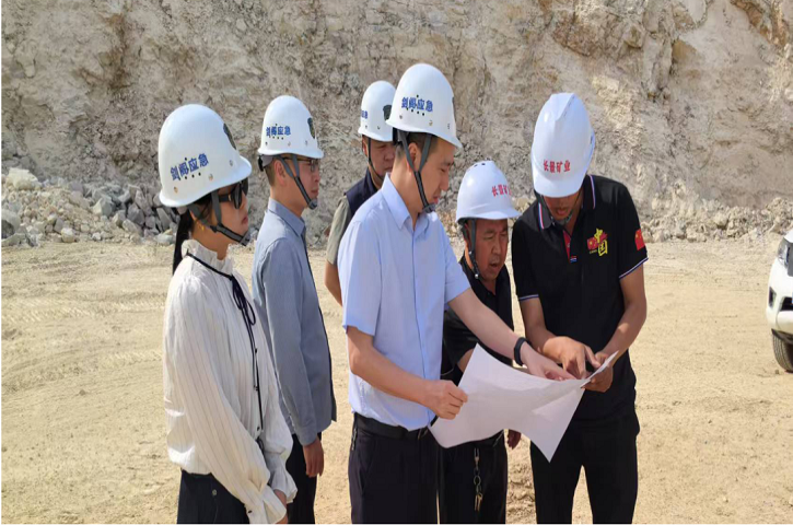 在长景矿业检查过程中,检查组发现该矿山应急预案未定期开展演练、部分平台存在菱形浮石等隐患,随即和该矿山主要负责人进行沟通,并下达《隐患整改通知书》。