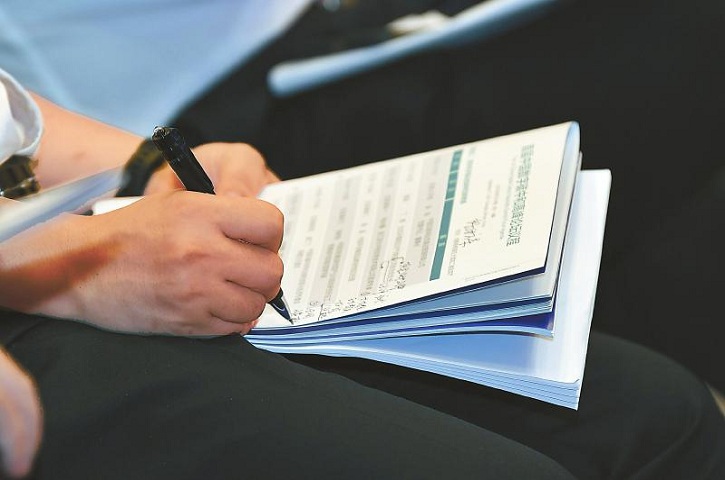 记录数字经济驱动低碳转型新跨越论坛现场,与会嘉宾认真做笔记。(图片均由记者杨树摄)