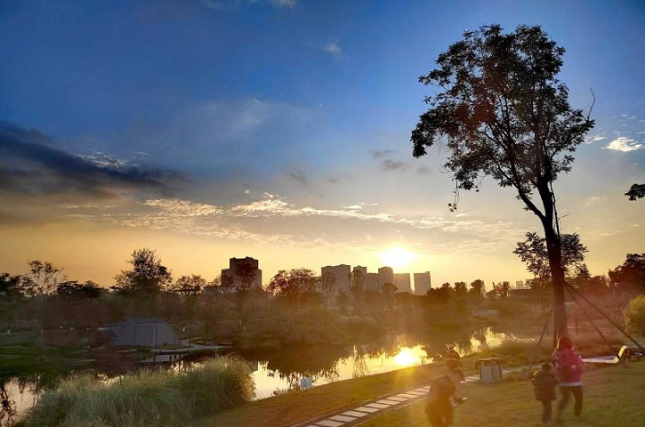 1月17日傍晚,成都高新西区中水湿地公园的夕阳美景。记者衡昌辉 摄