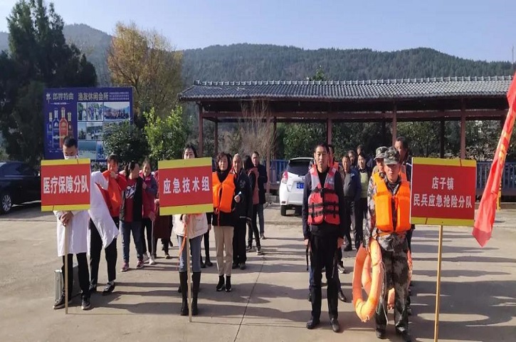 市生态渔业公司店子管护站参加演练。店子镇场镇单位、有关安全生产管理人员、沿湖群众近50余人参与了现场观摩。