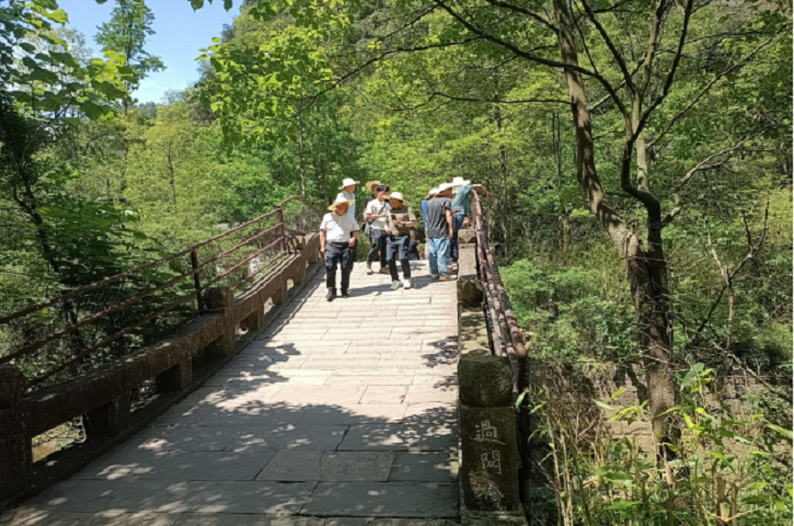 (图为:指导组一行查看剑门关景区沟道治理项目现场)
