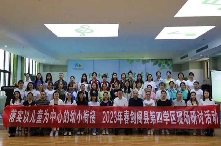 为深入贯彻落实《3—6岁儿童学习与发展指南》《幼儿园保育教育质量评估指南》,树立科学的儿童观、教育观,全面提高科学保教水平,6月16日,剑阁县第四学区开展了“落实以儿童为中心的幼小衔接”现场研讨活动。