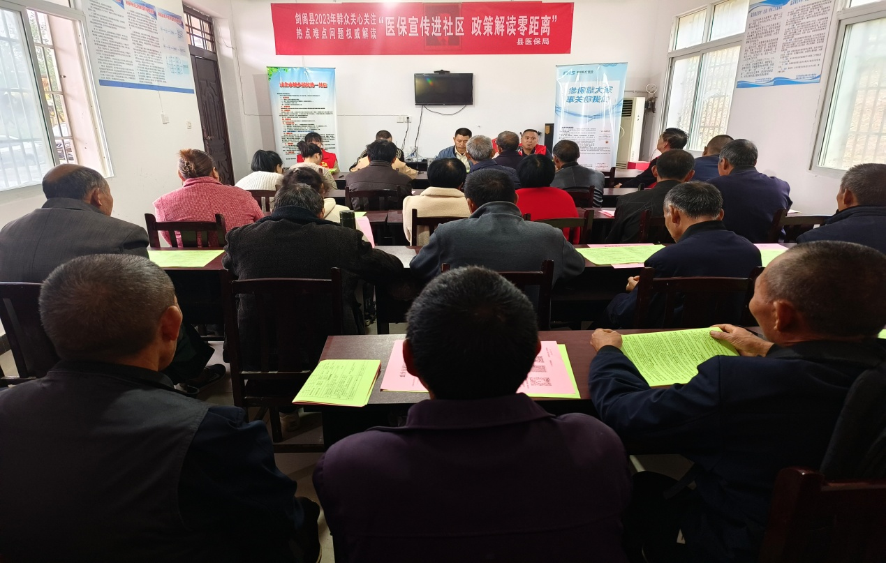 为加大城乡居民基本医疗保险政策宣传力度,提高群众对医保政策的知晓率和满意度,将医保惠民政策落实到千家万户。2023年10月30日,剑阁县医疗保障局开展“医保宣传进社区,政策解读零距离”活动,在盐店镇五丰村举行医保政策宣讲会,为老百姓面对面讲解政策,并现场答疑解惑。