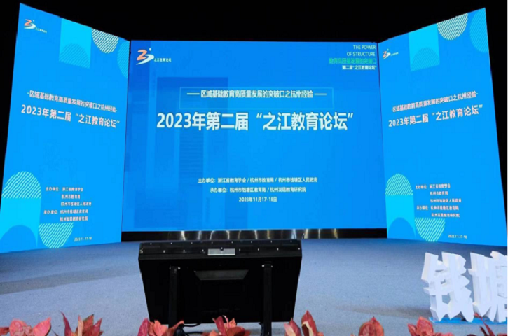 近日,浙江省教育学会第二届“之江教育论坛”在杭州市钱塘区文海中学开幕。论坛以“区域基础教育高质量发展的突破口之杭州经验”为主题,通过主旨报告、局长圆桌会、校长分论坛等形式,共同梳理浙江在基础教育提质中的成功经验和做法,总结区域教育高质量发展的经验,探索区域优质教育的结构模式。在上城区教育局的精心安排和各跟岗学校的支持下,剑阁县赴上城区跟岗学习的11位学员全程参加了这次论坛活动。