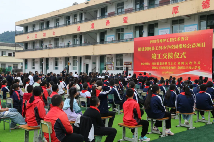 10月16日,四川省地坪工程技术协会捐赠剑阁县王河小学校园操场公益项目竣工交接仪式在王河小学举行。四川省慈善联合总会业务一部部长冯丽萍等领导出席仪式并致辞。剑阁县政协主席向坤道,县政协副主席唐永红,县教育局局长杜小琼,县政府办副主任贾华帮出席仪式。