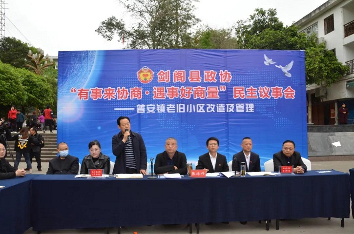 “我们小区建筑年久失修,外墙开裂、脱落,安全隐患多,供水管网、供气管网、网络线路杂乱无序”“粮家花园目前停车困难,小区绿化滞后,围墙破旧”……4月8日,县政协在普安镇政府广场组织召开“有事来协商·遇事好商量”专题议事坝坝会。来自县住建局、综合行政执法局、经信科局、文旅体局等部门有关负责人与社区居民“面对面”,围绕“老旧小区改造与管理”这一主题,就居民最关注、最迫切需要解决的民生问题进行协商。此次活动市、县政协领导、全县29个乡镇党委书记和政法统战委员到现场进行了观摩。