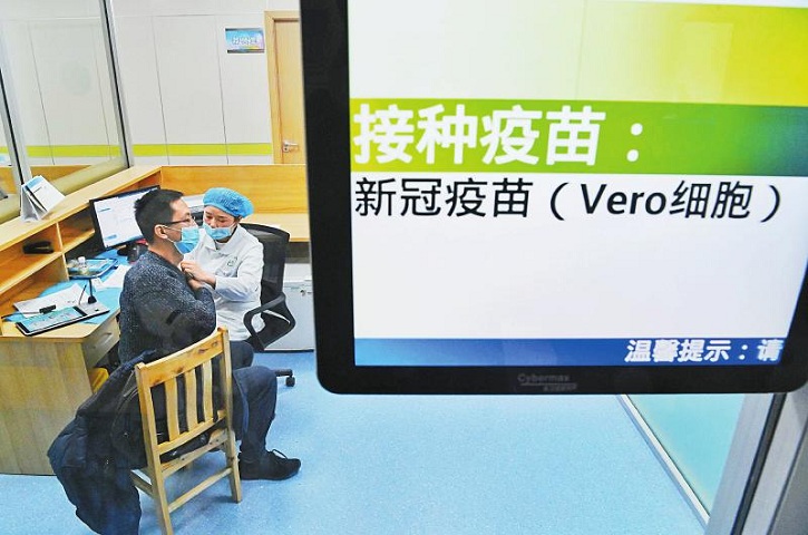 1月9日,成都市金牛区天回社区卫生服务中心,医务人员为重点人群接种新冠疫苗。(记者 肖雨杨 摄)